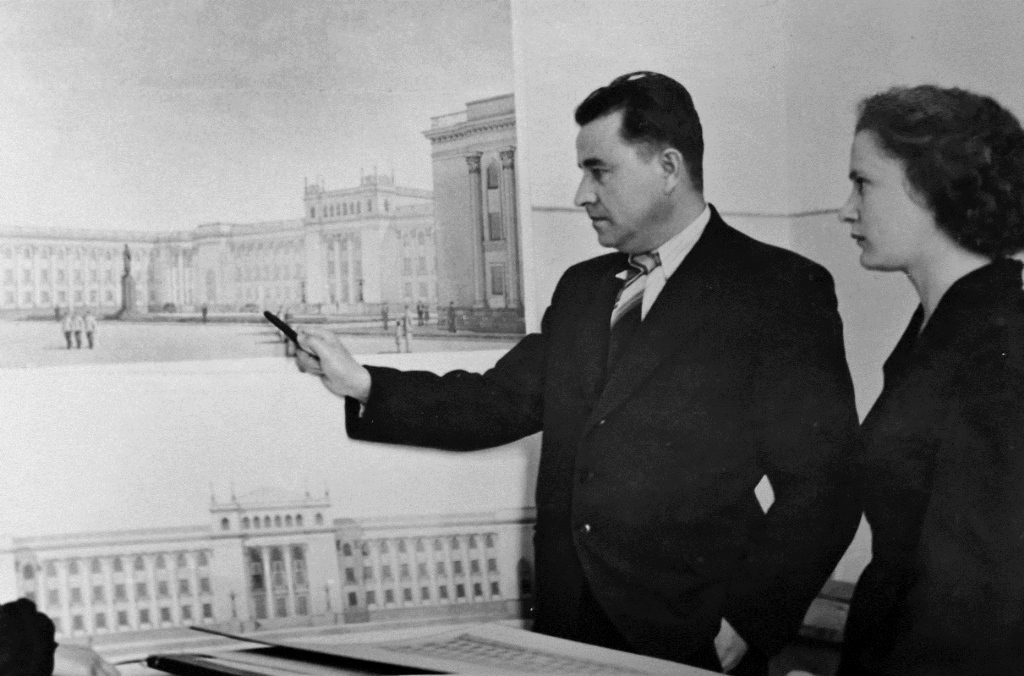 Великая Отечественная война приостановила работу, и только в 1947 году здание было готово. Интересно, что в строительстве в качестве прораба принимал участие и сам автор проекта.