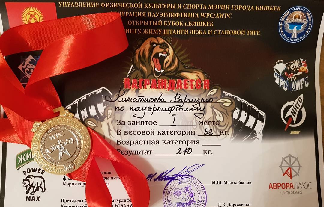 «Да, я чемпионка по пауэрлифтингу в своём весе, выступала в последний раз на Чемпионате Центральной Азии, – рассказывает она. – Для меня пауэрлифтинг – это не просто спорт, а школа дисциплины и настойчивости».