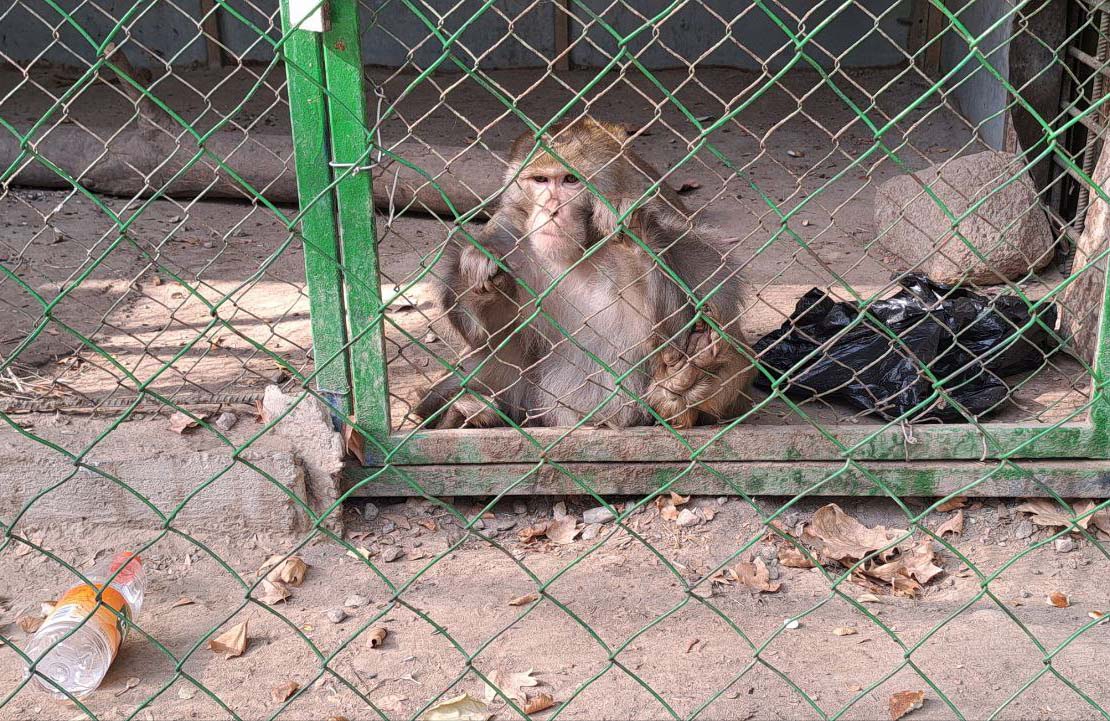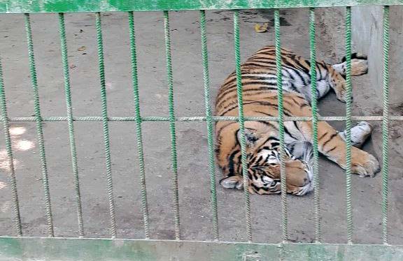 В других клетках — обезьяна среди мусора, амурский тигр, беспокойный дикобраз и несколько цесарок, бросившихся к решетке при виде людей. Было видно: птицы просто хотели пить — рядом валялось опрокинутое ведро.