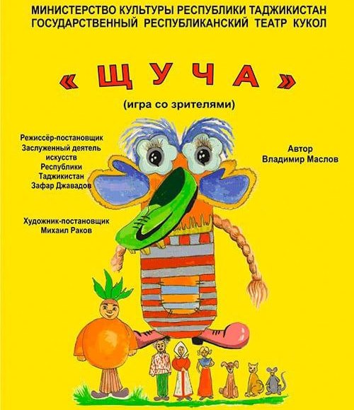 — В Государственном республиканском театре кукол «Лухтак» в 11:00 состоится показ детского интерактивного спектакля Зафара Джавадова «Щуча». Эта пьеса-игра, написанная драматургом Владимиром Масловым, подходит для детей любого возраста. За основу сюжета взята известная русская народная сказка про репку, но здесь, кроме двух актеров-заводил, принимают участие маленькие зрители. Они являются главными героями этой сказки, а Щуча – непонятное существо придуманное одним из героев сказки. Перед спектаклем в фойе первого этажа состоится «Шоу-концерт с куклами». Билеты доступны на сайте ticketon.tj.