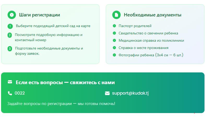 Решением председателя города Душанбе Рустама Эмомали 20 дошкольных учреждений столицы с охватом 5560 детей подключены к информационной платформе Kudak.tj, созданной для упрощения поступления детей в детские сады.