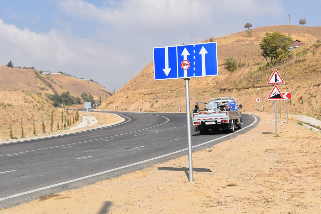Самый сложный горный отрезок Обигарм–Тагикамар (30,1 км) — теперь ровное полотно и предсказуемое движение. Проект — часть коридоров CAREC 2, 3 и 5, профинансирован АБР и Фондом ОПЕК. Здесь применили современную технологию покрытия: три слоя асфальта общей толщиной 15 см, ширина проезжей части — 8-12 м, а на спусках есть дополнительные полосы для обгона.