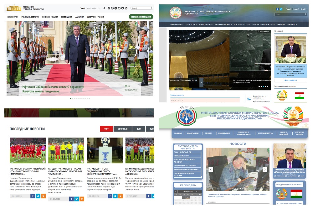 Хотя сайты представлены на нескольких языках, чаще всего актуальная информация доступна только на таджикском. Русскоязычные и англоязычные версии обновляются с задержкой или не содержат полного объема данных.