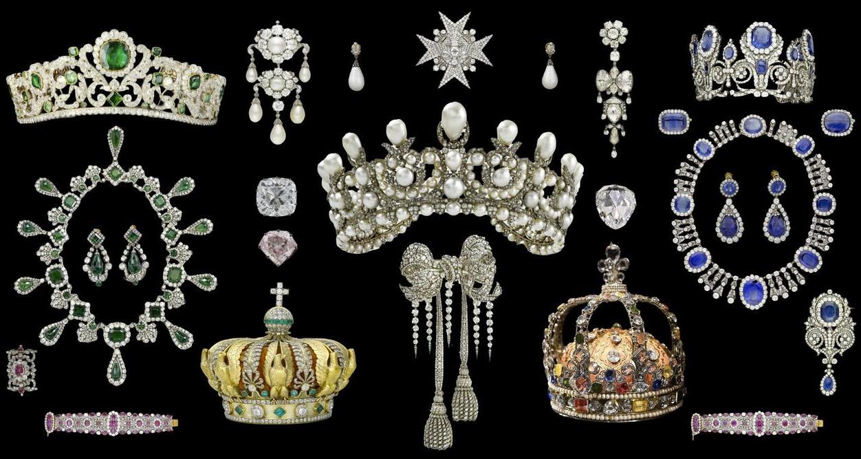 — колье, пара серег и диадема, принадлежавшие Марии Амалии, жене короля Луи-Филиппа I и Гортензии Богарне, матери Наполеона III;