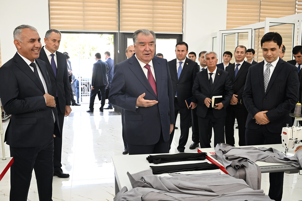 Эмомали Рахмон осмотрел готовую продукцию и отметил высокое качество и дизайн изделий, подчеркнув значение подобных предприятий для развития текстильной промышленности и переработки местного сырья внутри страны.