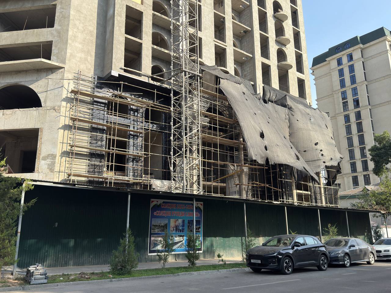 Ещё один пример — недострой на проспекте Рудаки, где застройщик несколько лет собирал средства с будущих жильцов, однако стройка застыла на уровне нескольких этажей. Лишь после многочисленных обращений в прокуратуру дело получило огласку, но квартиры люди так и не увидели.