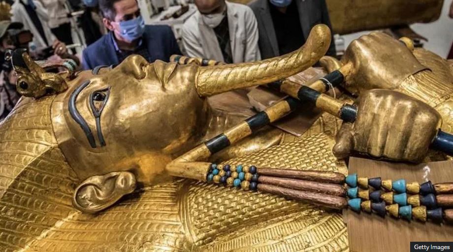 Среди представленных экспонатов — знаменитая золотая маска Тутанхамона, трон и колесницы.