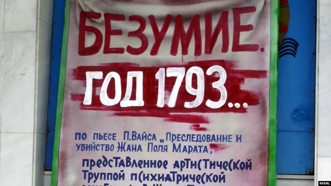 Сценарий спектакля был подготовлен на основе двух произведений – «Преследование и убийство Жана Поля Марата» немецкого драматурга Петера Улриха Вайса, а также «Год 93» Виктора Гюго, в которых рассказывается о революционных событиях XVIII века во Франции.