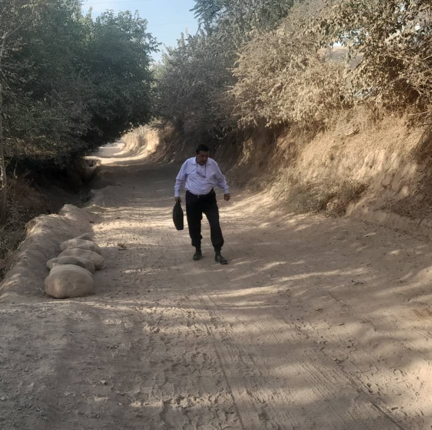 До недавнего времени дорога была вся в пыли и грязи. Семь лет подряд учитель, несмотря на пыль, жару и расстояние, ходил на работу в официальной одежде.