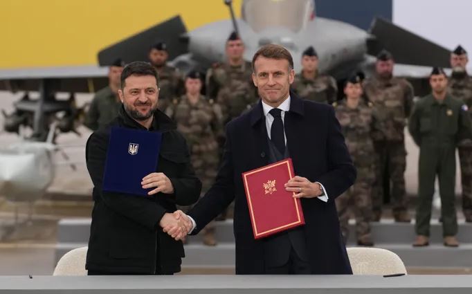 Документ, подписанный на взлетной полосе авиабазы Виллакубле под Парижем, предусматривает приобретение у компании Dassault 100 истребителей Rafale для Киева в течение ближайших 10 лет, пишет Би-Би-си.