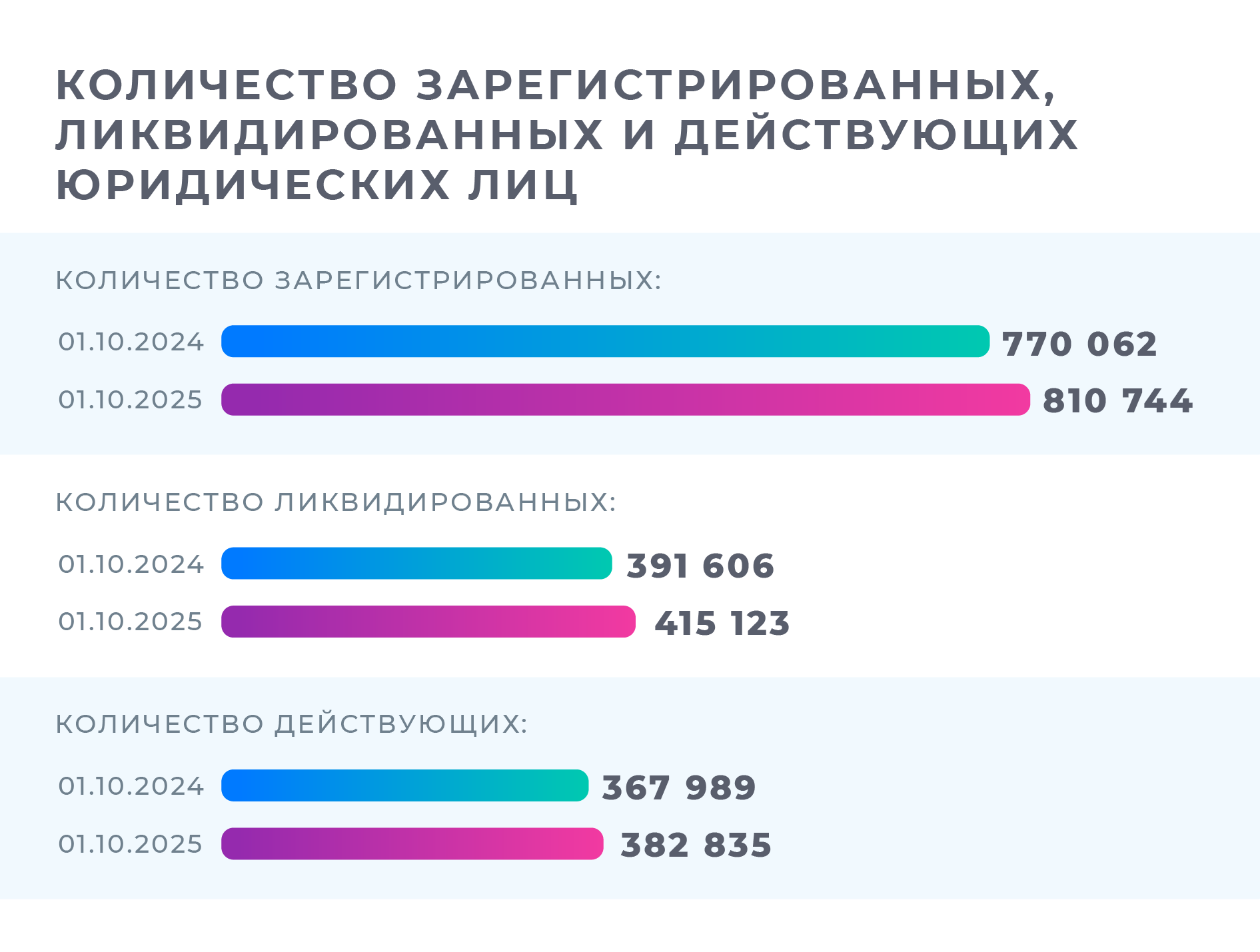 На 1 октября 2025 года количество зарегистрированных предприятий в республике увеличилось до 810,7 тысячи, вместе с ними выросло и число ликвидированных компаний.