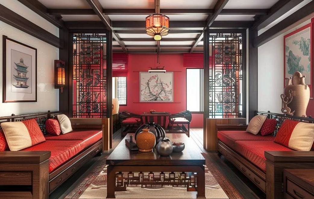 Мебель делали из тяжёлого красного дерева — резные шкафы, широкие скамьи, низкие чайные столики, массивные сундуки вместо гардеробов. Каждый предмет нёс символ. На дверцах изображали журавлей и бамбук, чтобы привлечь удачу и стойкость. Комнаты сохраняли строгую иерархию: старшие жили ближе к входу, младшие — дальше, и это считалось естественным порядком вещей.