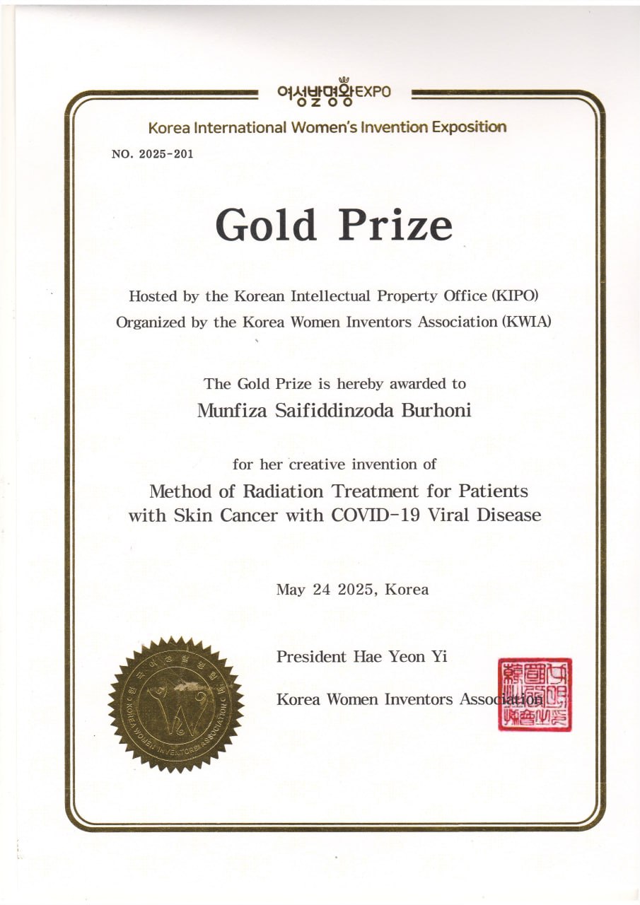 Среди наиболее значимых достижений – специальная награда Международной федерации ассоциаций изобретателей (IFIA), присуждённая Мунфизе Бурхони, заведующей кафедрой рентгенологии и радиологии ТГМУ, за разработку щадящей методики лучевой терапии для пациентов с раком кожи в условиях пандемии.
