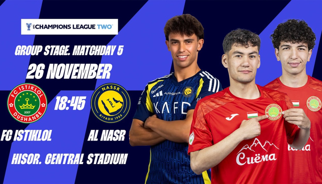 — На центральном стадионе Гиссара в 18:45 состоится решающий матч между столичным «Истиклолом» и «Аль-Насром» в рамках 5-го тура Лиги чемпионов АФК-2 (группа D). Для «Истиклола» домашний матч с главным фаворитом группы — шанс не только взять реванш за сентябрьское поражение 0:5 в Эр-Рияде, но и сделать серьёзный шаг к выходу из группы перед заключительной игрой против «Гоа».