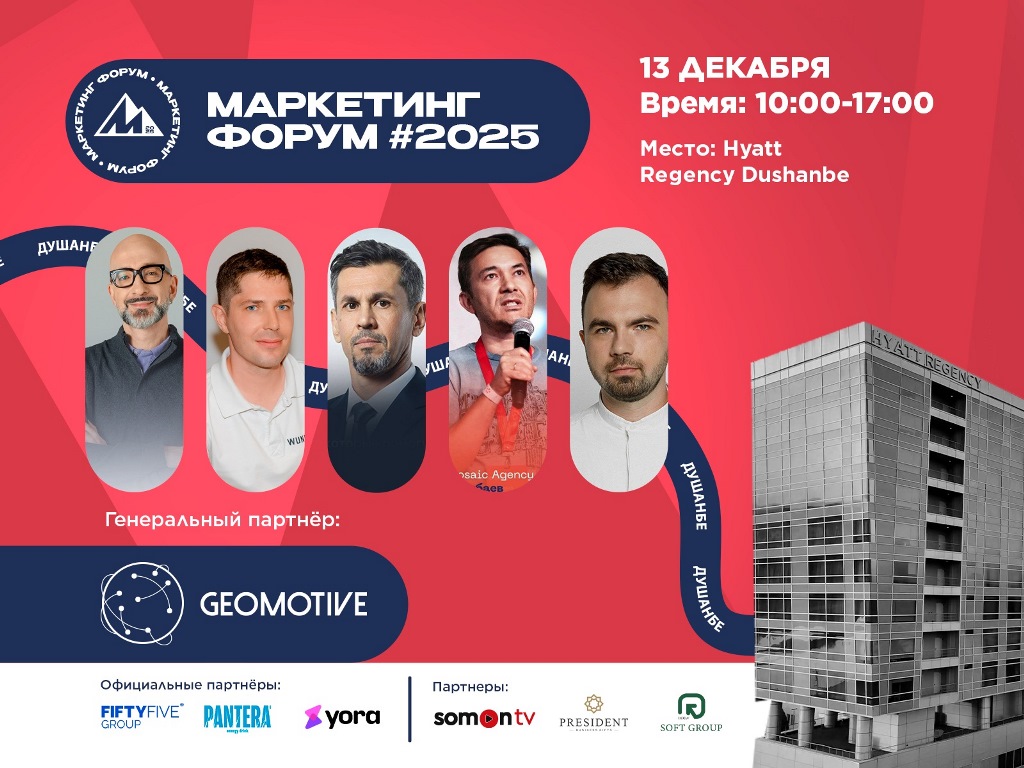 13 декабря в Душанбе состоится международный Marketing Forum-2025. Мероприятие пройдет в отеле Hyatt Regency и соберёт ведущих экспертов, руководителей и маркетологов со всего СНГ.
