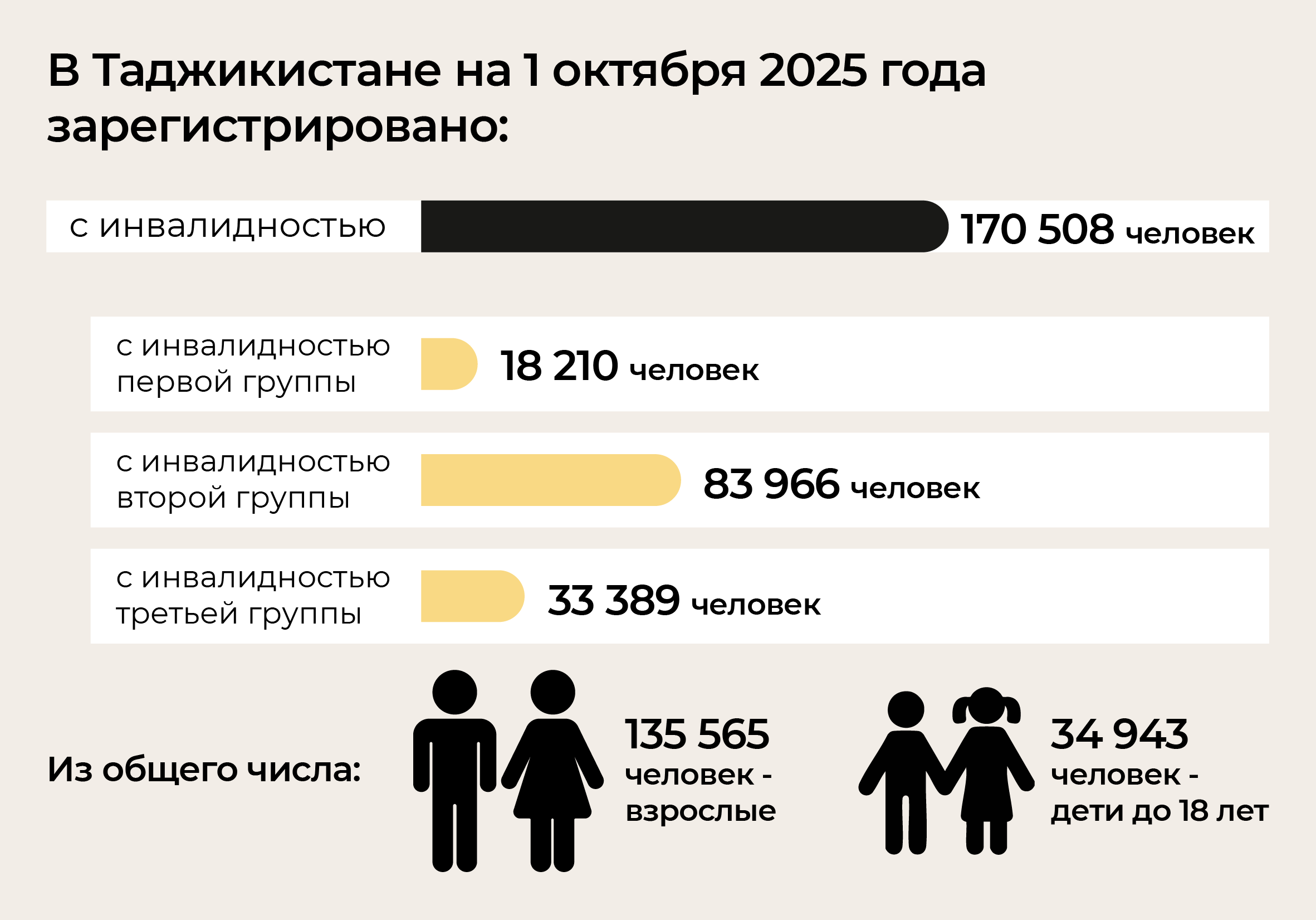 На 1 октября 2025 года в Таджикистане пенсию по инвалидности получают 170 417 человек.