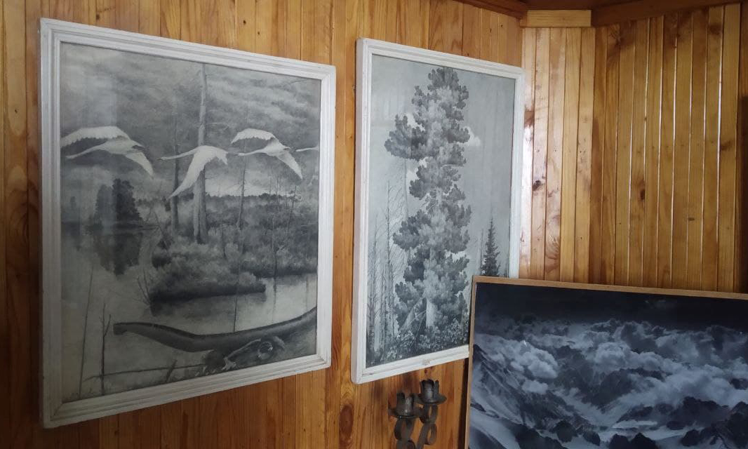 Собственные рисунки карандашом сложно отличить от фотографий, настолько мастерски они выполнены. На полках аккуратно разложены всевозможные затейливые фигурки из дерева, напоминающие сказочных героев. А небольшой композитный столик из деревянных спилов мог бы оценить даже самый заядлый коллекционер мебели.