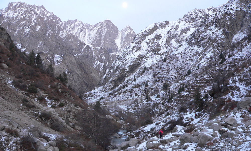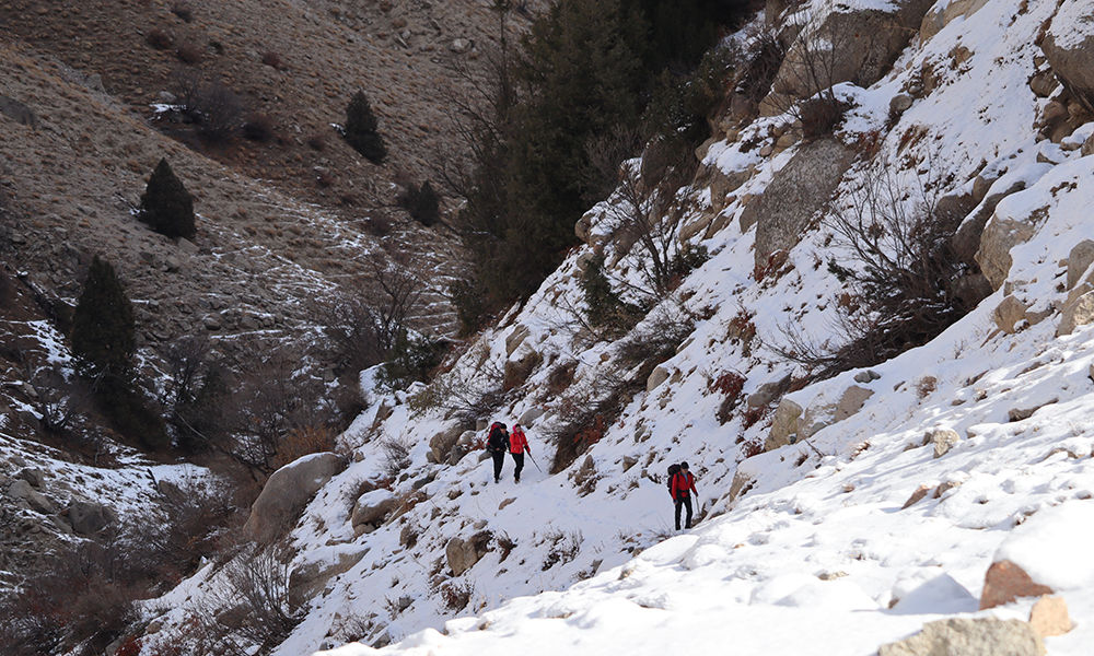 Первый хрустящий снег, покрывший ущелье, указывал на ее диких обитателей. Следы лисы, пытавшейся замести их хвостом, стали неким путеводителем в нашем походе.