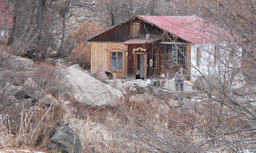 Немного ниже по склону находилась баня, но ее, как позже рассказал Иван, разрушил сильный поток лавины. Баня отстроилась в более безопасном месте, рядом с домом. Кое-где лежат аккуратно сложенные связки нарубленных дров.
