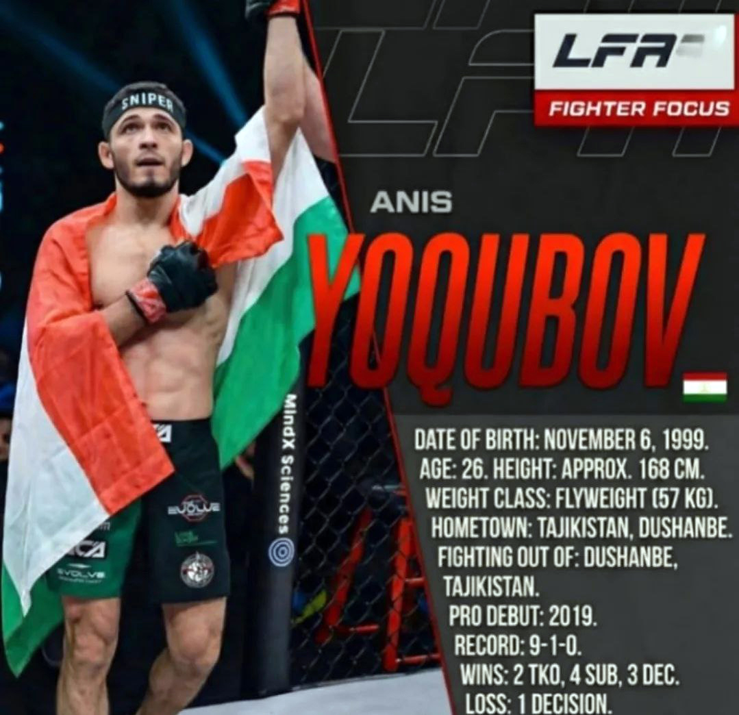 Не так давно Анис Екубов (9-1) покинул лигу АСА, а теперь таджикистанец подписал контракт с американским промоушеном LFA. Боец проведет свой дебютный бой в Бразилии 23 января. Соперник станет известен позже.