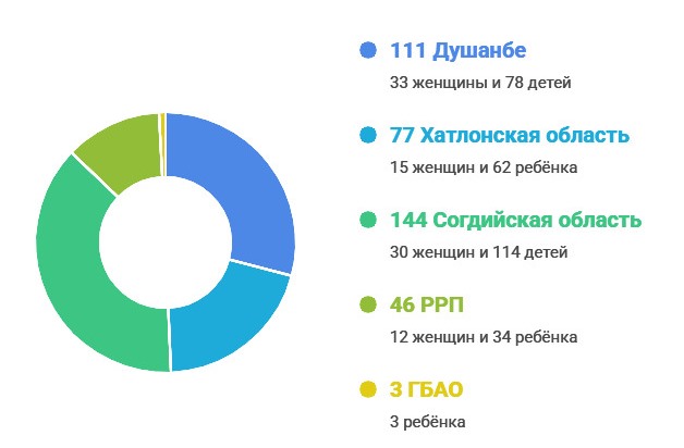 По данным Минздрава РТ, с 2019 года в Таджикистан из зон боевых действий в Ираке и Сирии были возвращены сотни женщин и детей. В частности: