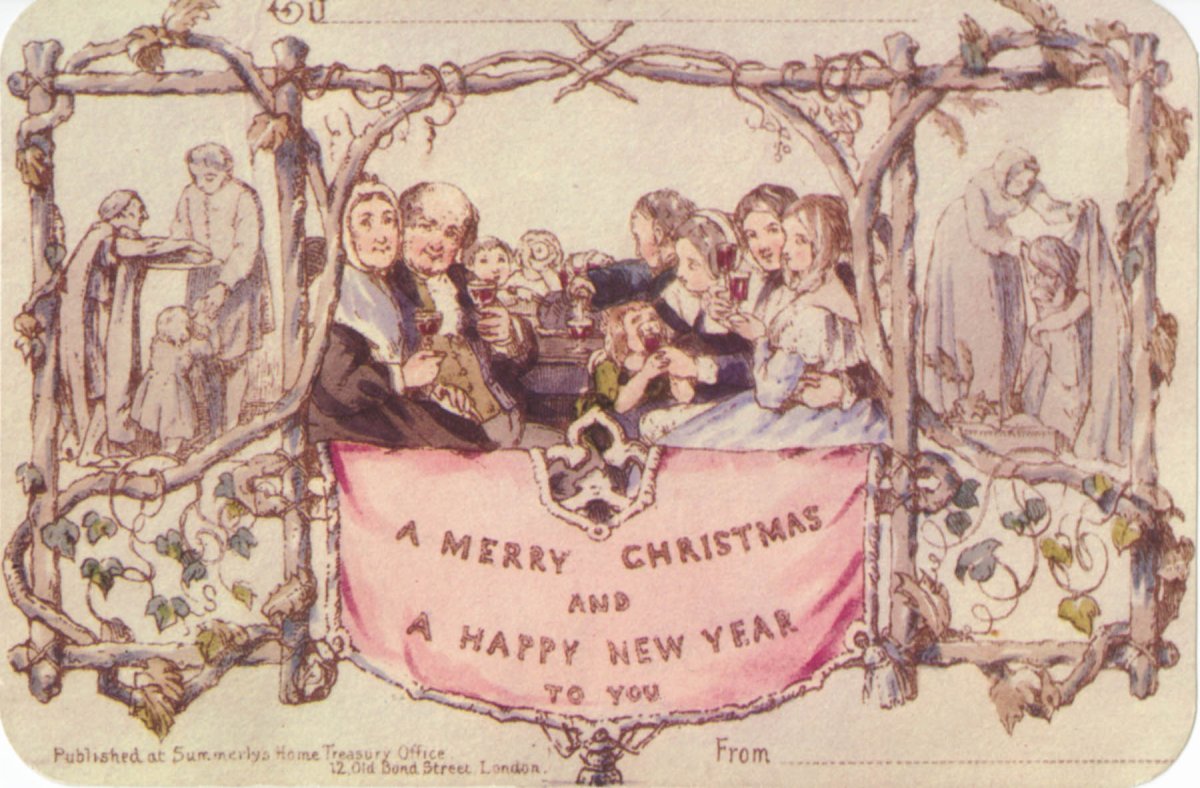 9 декабря 1840 года была выпущена первая рождественская открытка. Лондонский чиновник Генри Коул, то ли ленясь собственноручно подписывать поздравление знакомым с Рождеством, то ли желая обратить на себя внимание, попросил друга и художника Джона Хорсли сделать на визитке небольшой акварельный коллаж с подписью: «Веселого Рождества и Счастливого Нового года!»