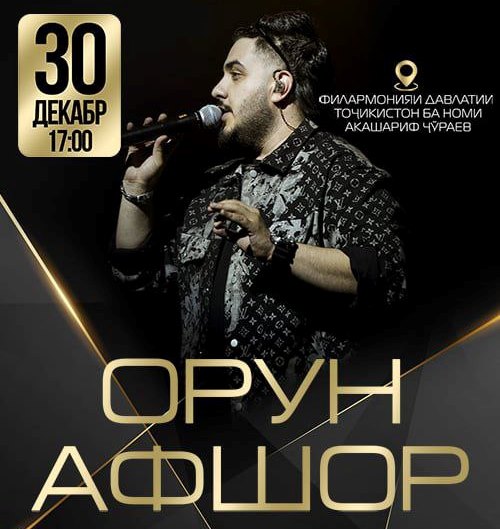 В Государственной филармонии им. А. Джураева 30 декабря в 17:00 состоится концерт знаменитого иранского артиста Оруна Афшора. Звезда иранской эстрады, автор самых чувственных хитов и голос, который невозможно перепутать, впервые выступит в Душанбе с большим сольным концертом. Приготовьтесь к вечеру, наполненному эмоциями, силой музыки и атмосферой, которую можно ощутить только вживую. В программе – хиты, покорившие миллионы: Janam Bash, Bavar Nakon, Shabe Boghz и другие.