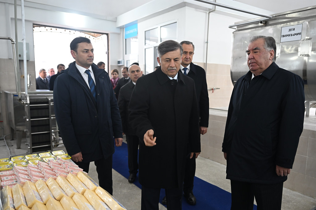 Рабочая поездка Эмомали Рахмона в район Джайхун Хатлонской области началась с открытия предприятия «Шири Джайхун» — молочного завода, созданного на базе Душанбинского молочного комбината, который производит более 10 наименований продукции, включая сливки, творог, кефир, джургот, фруктовый кефир, дугоб и масло.