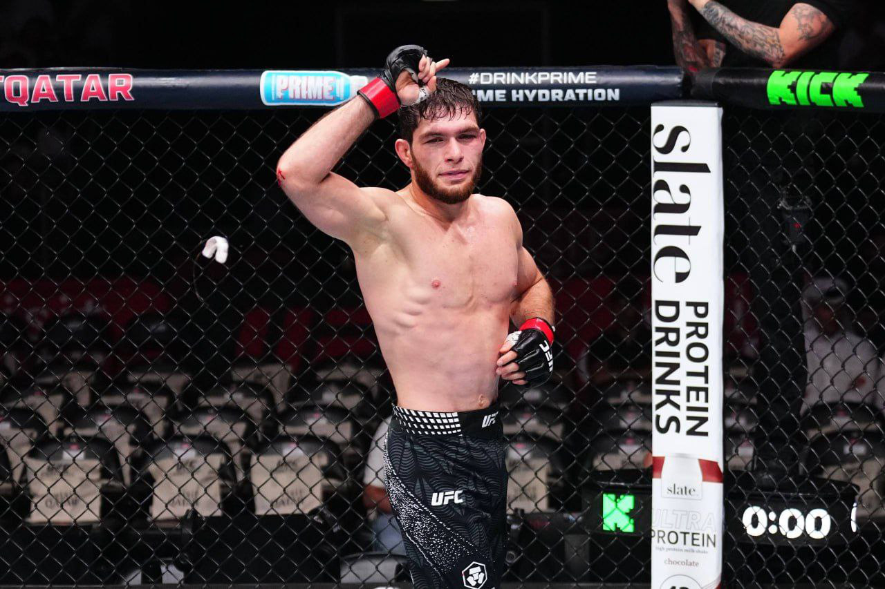 Год Мухаммада Наимова можно назвать самым насыщенным и неоднозначным. В феврале на UFC Fight Night 250 в Эр-Рияде он встретился с австралийцем Кааном Офли и выиграл единогласным решением (30-27, 30-27, 29-28). Поединок получился вязким: много клинча, попыток переводов, но Наимов в итоге оказался точнее и показывал большую активность в ключевые моменты. За этот бой он получил 81 тысячу долларов — 38 за выход, 38 за победу и 5 от спонсоров.