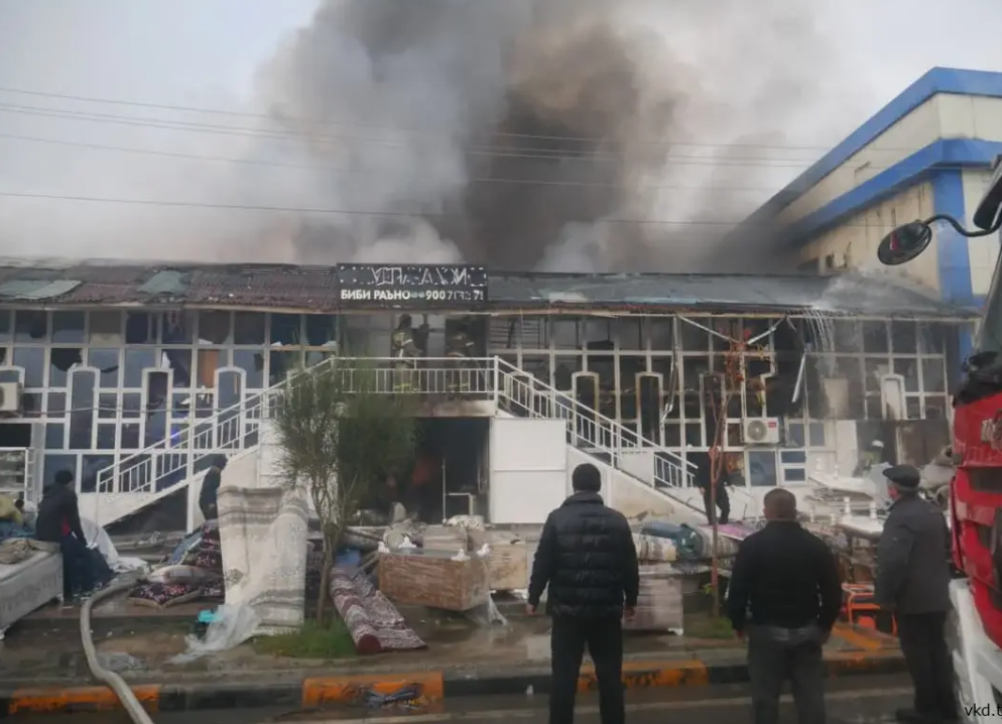 В торговых павильонах, расположенных на улице Крупской района Фирдавси, в начале рынка «Корвон», произошел пожар