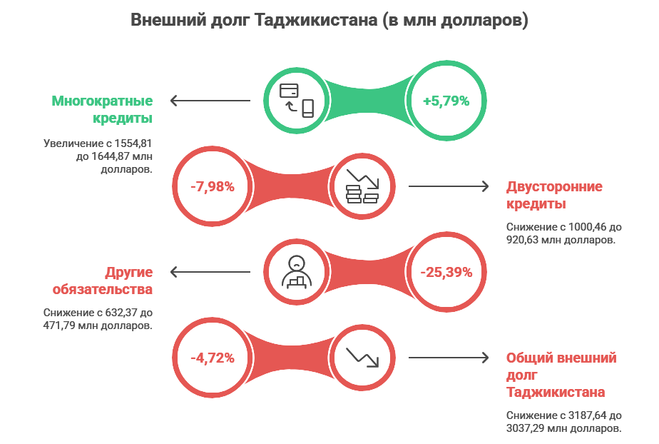 Одновременно в 2026 году правительство планирует привлечь новые кредиты на сумму более 6,3 млрд сомони (678 млн долларов) для реализации государственных инвестиционных проектов. Это означает, что круговорот долгов продолжится — старые долги будут погашаться, а новые кредиты будут привлекаться.
