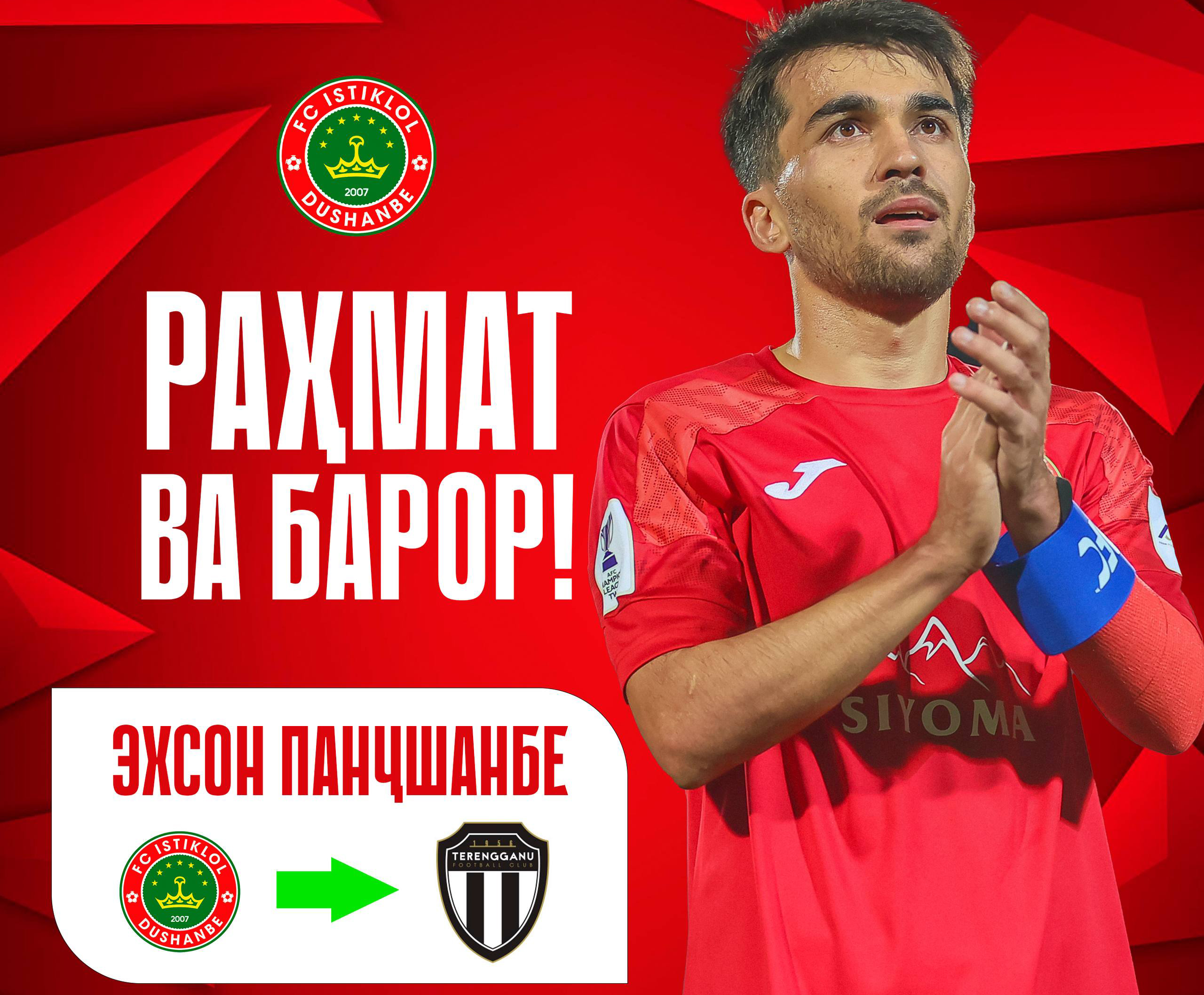 Эхсони Панджшанбе (центральный полузащитник) ушёл из «Истиклола» в «Теренгану», где продолжит карьеру в Суперлиге Малайзии.