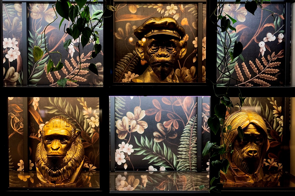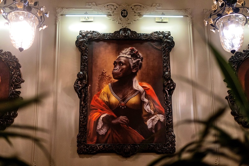 Вопрос, которым, наверное, задаётся каждый, кто впервые заходит в 28 Monkeys — почему обезьяны и почему их 28? Интерьер с портретами, на которых узнаваемые исторические персонажи предстают в виде обезьян, сам по себе достаточно эксцентричен.