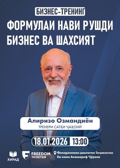 В Государственной филармонии им. А. Джураева 18 января в 13:00 пройдёт первый за последние годы бизнес-тренинг на таджикском языке с участием спикера мирового уровня Алиреза Озмандийон.
