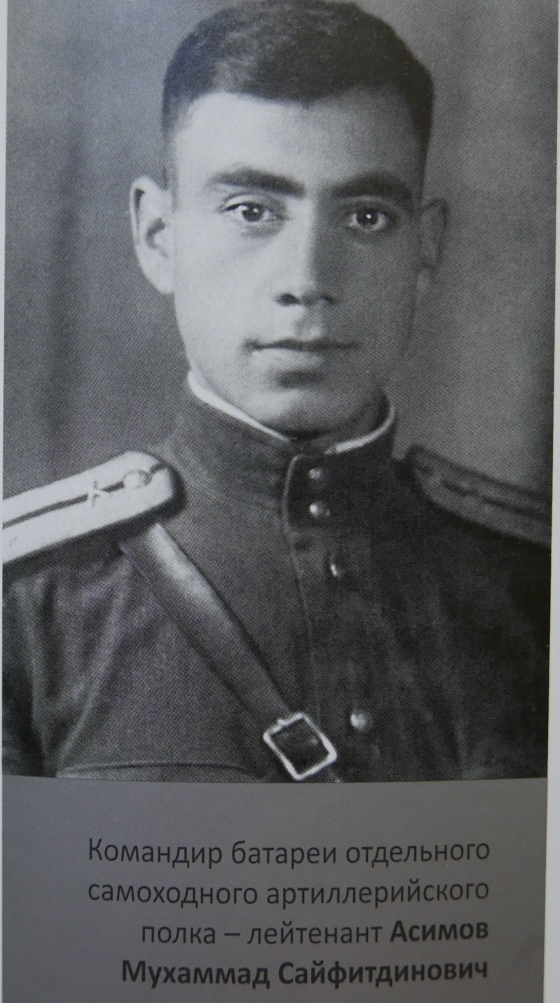 8 марта 1944 года в бою была подбита и загорелась самоходная артиллерийская установка СУ-85 лейтенанта Мухаммада Асимова. Несмотря на охвативший машину огонь, он продолжал управлять батареей и корректировать огонь по радио. Обгоревший и тяжело раненый, лейтенант Асимов до конца боя оставался на боевом посту. После войны он стал выдающимся учёным — специалистом по онтологии и гносеологии, академиком и президентом Академии наук Таджикской ССР.