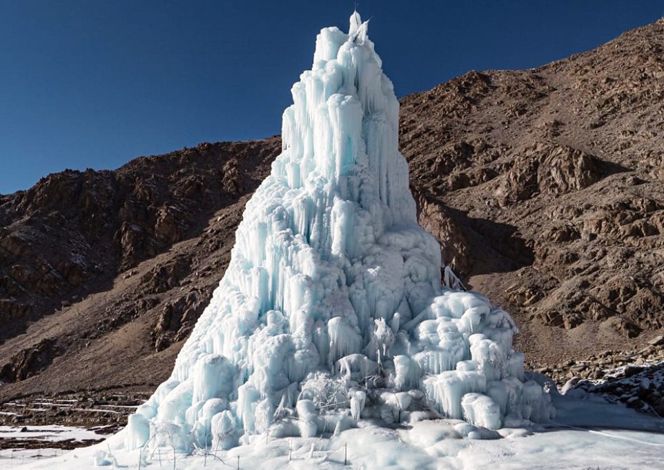 «Весной и летом вода, поступающая из искусственного ледника, собирается в водохранилище и используется по мере необходимости. А зимой она способствует формированию самого ледника», — отметили специалисты организации.