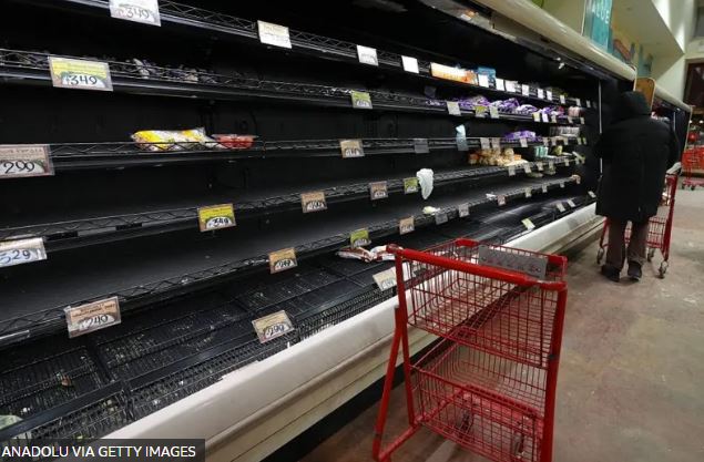 По всей стране стремительно пустеют полки продуктовых магазинов: жители многих регионов готовятся к тому, что в ближайшие дни могут оказаться отрезанными от внешнего мира в собственных домах.