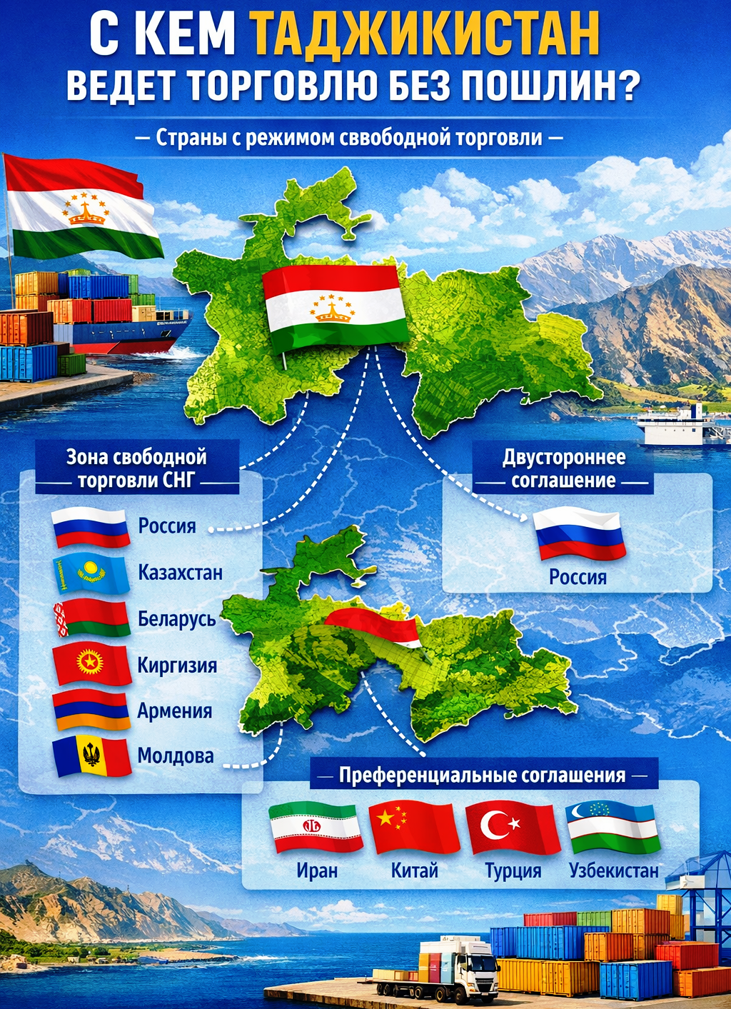 Таджикистан может экспортировать свои товары в эти страны без уплаты вывозных пошлин, что делает торговлю более выгодной и простой. Соглашение охватывает широкий перечень товаров, но в отдельных случаях могут применяться ограничения или дополнительные меры.