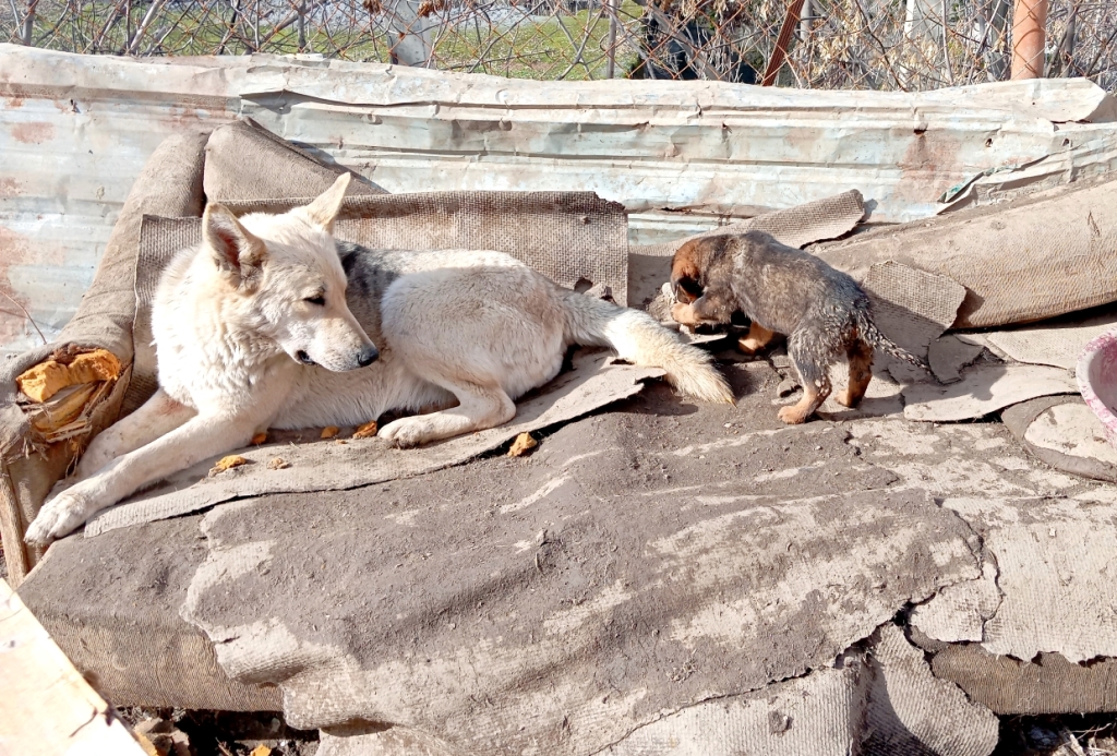 На узком, огороженном участке рядом с заводом (всего четыре сотки) живёт более сотни взрослых собак и щенков. Это не приют в классическом понимании: без документальных разрешений, без комфортных вольеров, с постоянной нехваткой средств на содержание и лечение.