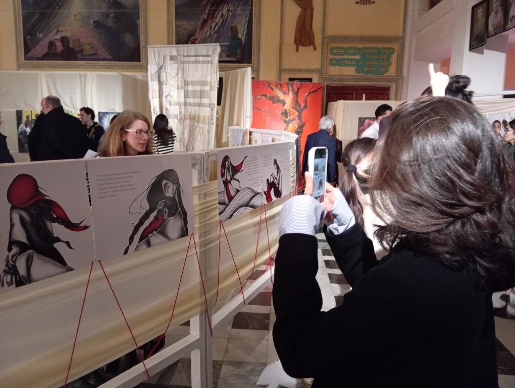 В мрачноватых картинах с описанием в виде длинного буклета рассказана удивительная история прабабушки Шаймы Гулбековой, названная «По ту сторону». Она о любви и заботе.