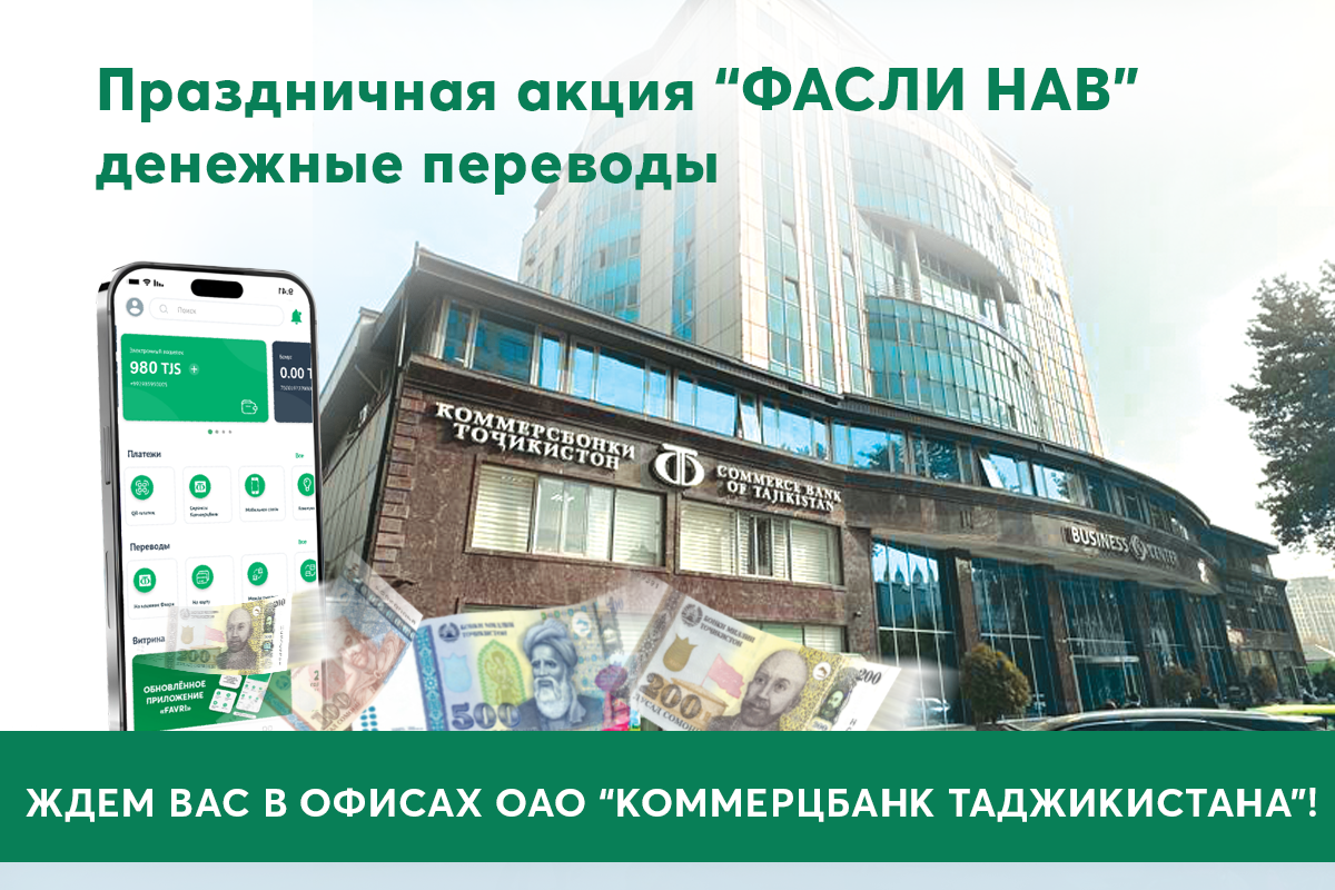 По случаю наступления Навруза ОАО «Коммерцбанк Таджикистана» подготовил праздничную акцию «Фасли Нав» для клиентов, совершающих денежные переводы.