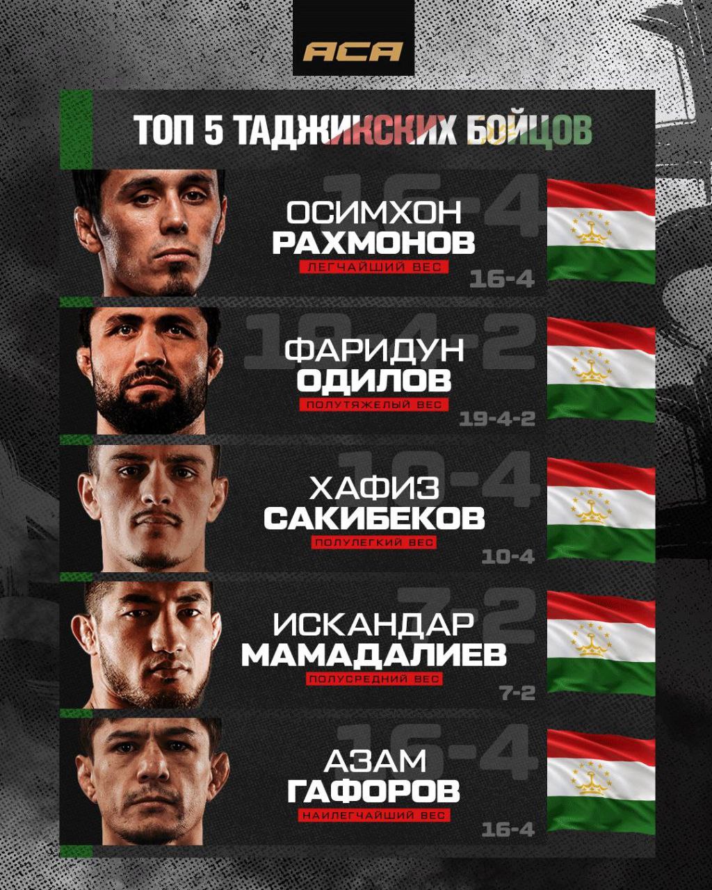 Лига ACA представила актуальный топ-5 таджикских бойцов, и этот список отражает реальный статус спортсменов внутри организации.
