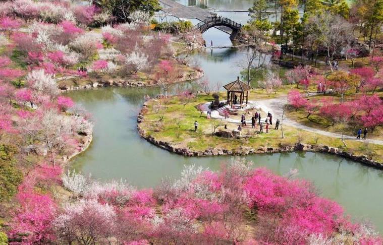 Ухань весной превращается в розовую волну сакуры среди городских небоскрёбов. Пик цветения приходится на конец марта — начало апреля.