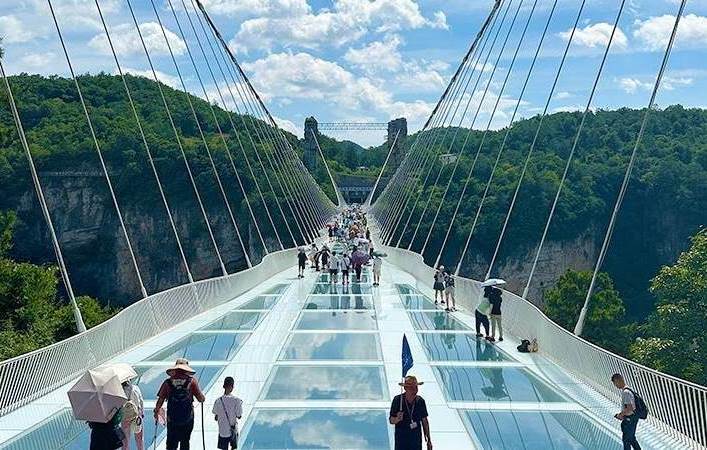 Здесь стоит пройти по стеклянному мосту, подняться на гору Тяньмэнь и прогуляться по долинам, чтобы почувствовать столбы не только снаружи, но и изнутри. Пейзаж Чжанцзяцзе впечатляет масштабом и формой одновременно.