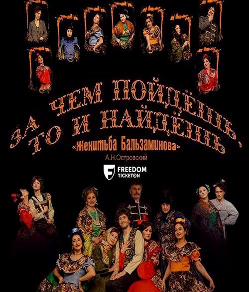 — На сцене Государственного русского драматического театра им. В. Маяковского в 14:00 состоится показ спектакля «За чем пойдешь, то и найдешь», по пьесе Н. Островского «Женитьба Бальзаминова» в постановке Хуршеда Мустафоева. Комедия повествует о небогатом, наивном и мечтательном чиновнике Мише Бальзаминове, который ищет богатую невесту, чтобы выбиться в люди.