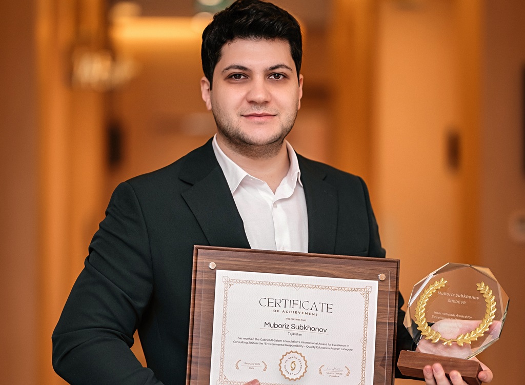 Таджикский IT-предприниматель Мубориз Субхонов и его компания «ШЕДЕВР» стали лауреатами престижной международной премии Gabriel Al-Salem Award for Excellence in Consulting — одной из главных мировых наград в сфере управленческого консалтинга — за выдающиеся достижения в области консалтинга и «зелёной» цифровизации.