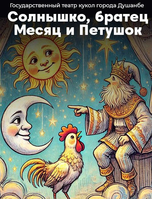 В Государственном республиканском театре кукол «Лухтак» 8 марта в 11:00 состоится показ спектакля Ш.Киямова «Солнышко, братец Месяц и Петушок» в постановке Зафара Джавадова. Это история о трёх братьях, которые когда-то жили на небе: старший — Солнышко, средний — Месяц и младший — Петушок. Но однажды у небесного народа случилась беда, и Солнышко был вынужден отлучиться из дома. Он наказал младшим братьям жить дружно, а что из этого вышло — вы узнаете, посмотрев спектакль.