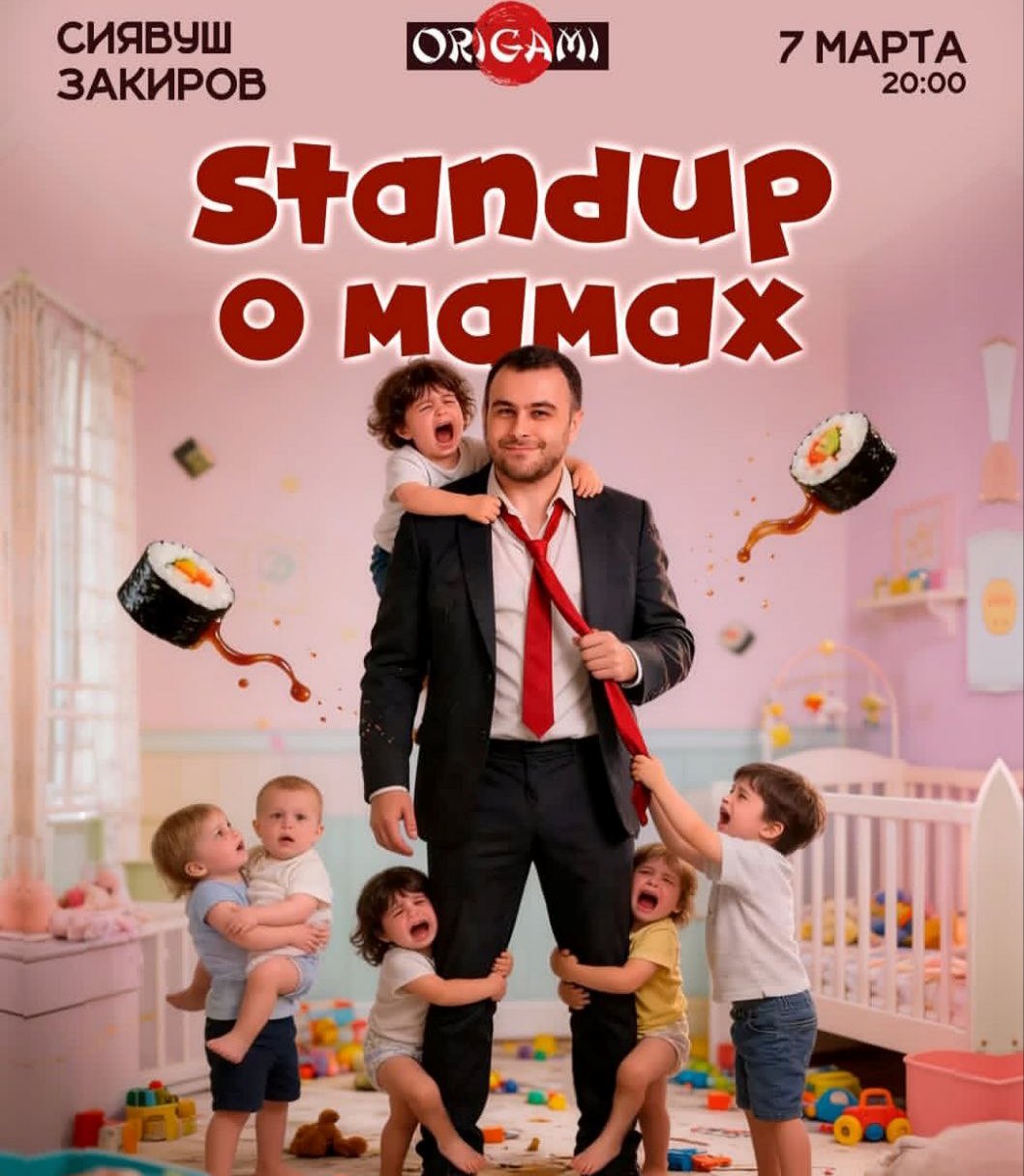 В японском кафе Origami 7 марта в 20:00 состоится праздничный stand-up Сиёвуша Закирова «О мамах». В программе — живое общение и стендап.