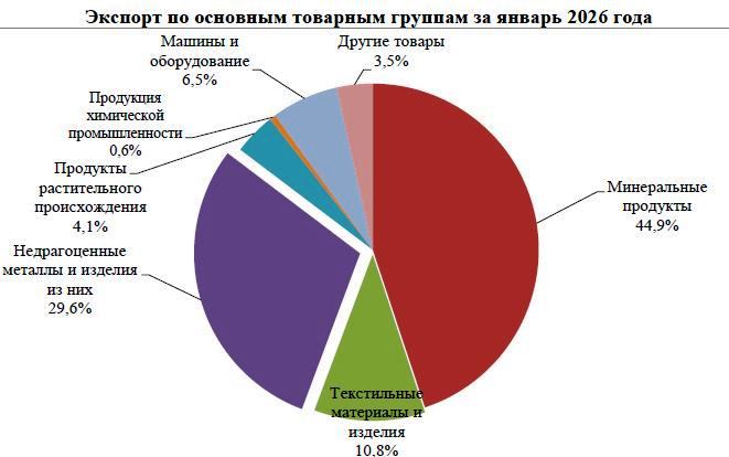 Экспорт в январе составил $175,2 млн, что на 53,1% (на $60,8 млн) больше по сравнению с этим же периодом 2025 года.