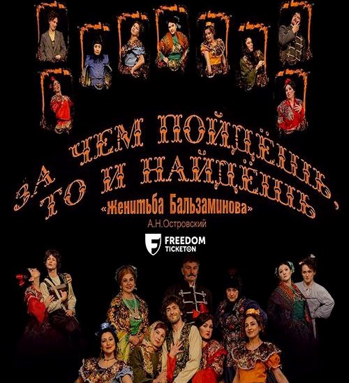 — На сцене Государственного русского драматического театра им. В. Маяковского в 15:00 состоится показ спектакля «За чем пойдешь, то и найдешь» по пьесе Н. Островского «Женитьба Бальзаминова» в постановке Хуршеда Мустафоева. Комедия повествует о небогатом, наивном и мечтательном чиновнике Мише Бальзаминове, который ищет богатую невесту, чтобы выбиться в люди. С помощью свахи он попадает в нелепые ситуации, но в итоге вступает в брак по расчету.